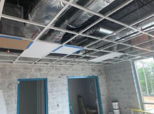 HVAC ducts and ceiling tile grid at new animal shelter